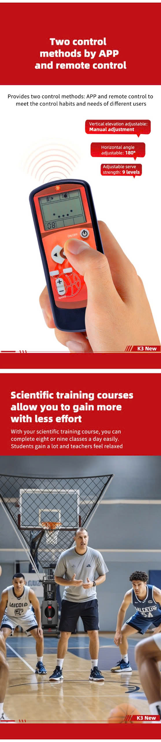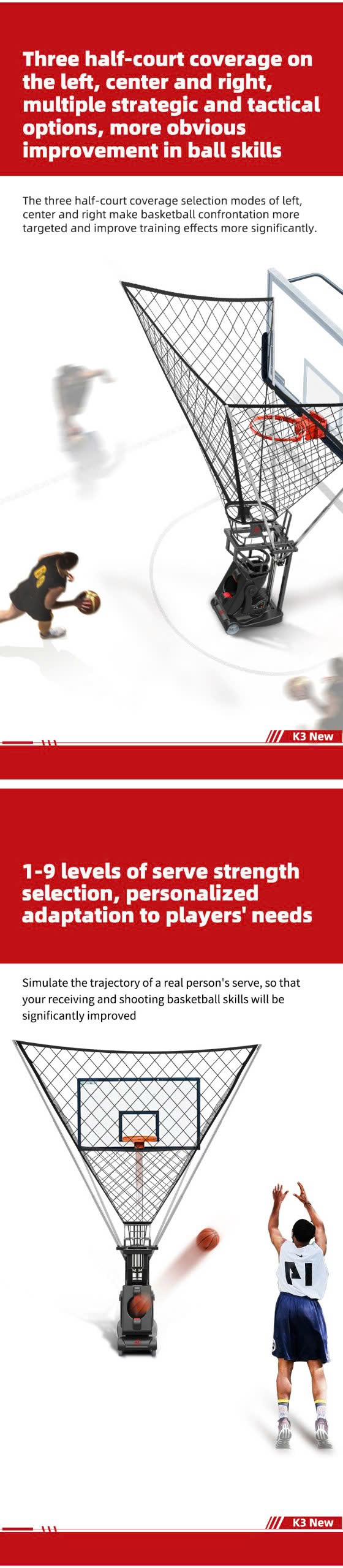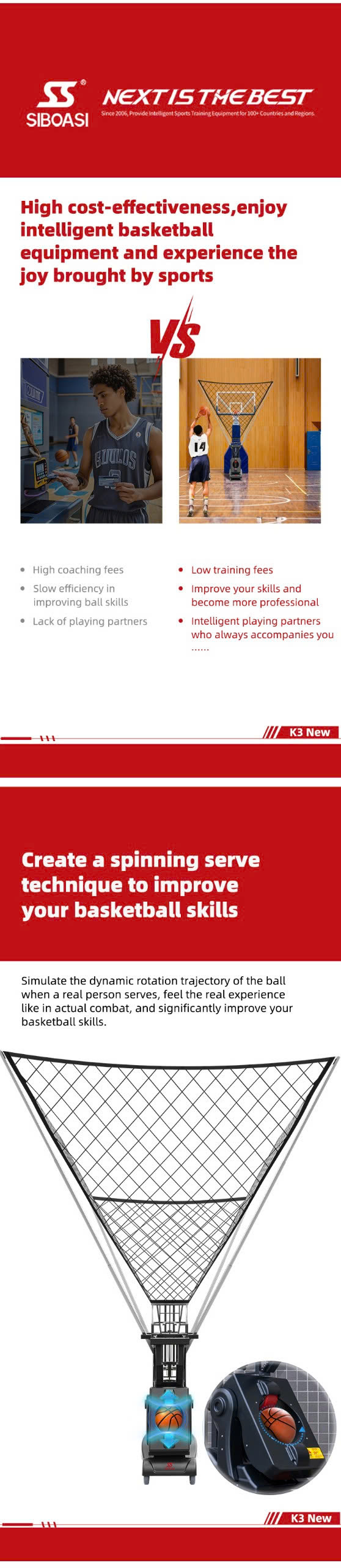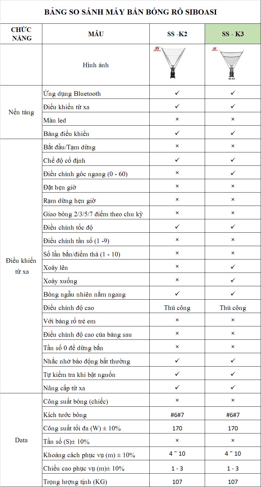Máy bắn bóng rổ Siboasi K3 giúp nâng cao kỹ năng ném bóng và có thể luyện tập mọi lúc mọi nơi: ✔ Cú đánh xoáy ✔ Ba cú giao bóng nửa sân trái, giữa và phải ✔ Tốc độ có thể điều chỉnh ✔ Cú đánh điểm cố định ✔ Dễ di chuyển