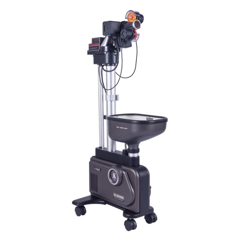 Máy bắn bóng bàn Y&T V989-K được thiết kế thông minh, trang bị nhiều chế độ bắn bóng cho người tập và có khả năng điều chỉnh tốc độ, độ xoáy dễ dàng. Mẫu máy bắn này hiện đang được sử dụng cho người chơi bóng bàn tại nhà lẫn trung tâm đào tạo bóng bàn chuyên nghiệp.- Điều khiển bằng ứng dụng trên điện thoại: Người dùng có thể sử dụng ứng dụng trên điện thoại để điều khiển máy bắn bóng, bao gồm các chức năng như điều chỉnh độ xoáy, tốc độ, tần suất, điểm rơi của bóng, v.v...
