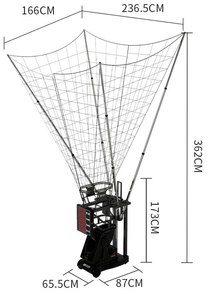 - Chương trình tính toán thông minh, màn hình LED độ nét cao hiển thị đồng bộ dữ liệu về thời gian tập luyện, số lượng bóng, số lượng bàn thắng và tỷ lệ đánh;