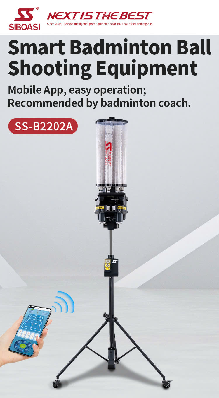Máy bắn cầu lông Siboasi B2202A:- Điều khiển linh hoạt, thông minh: SIBOASI B2202A cho phép bạn điều chỉnh tốc độ, tần suất, góc bắn qua cả remote và ứng dụng điện thoại, giúp bạn dễ dàng tùy chỉnh bài tập theo ý muốn chỉ với một cú chạm.