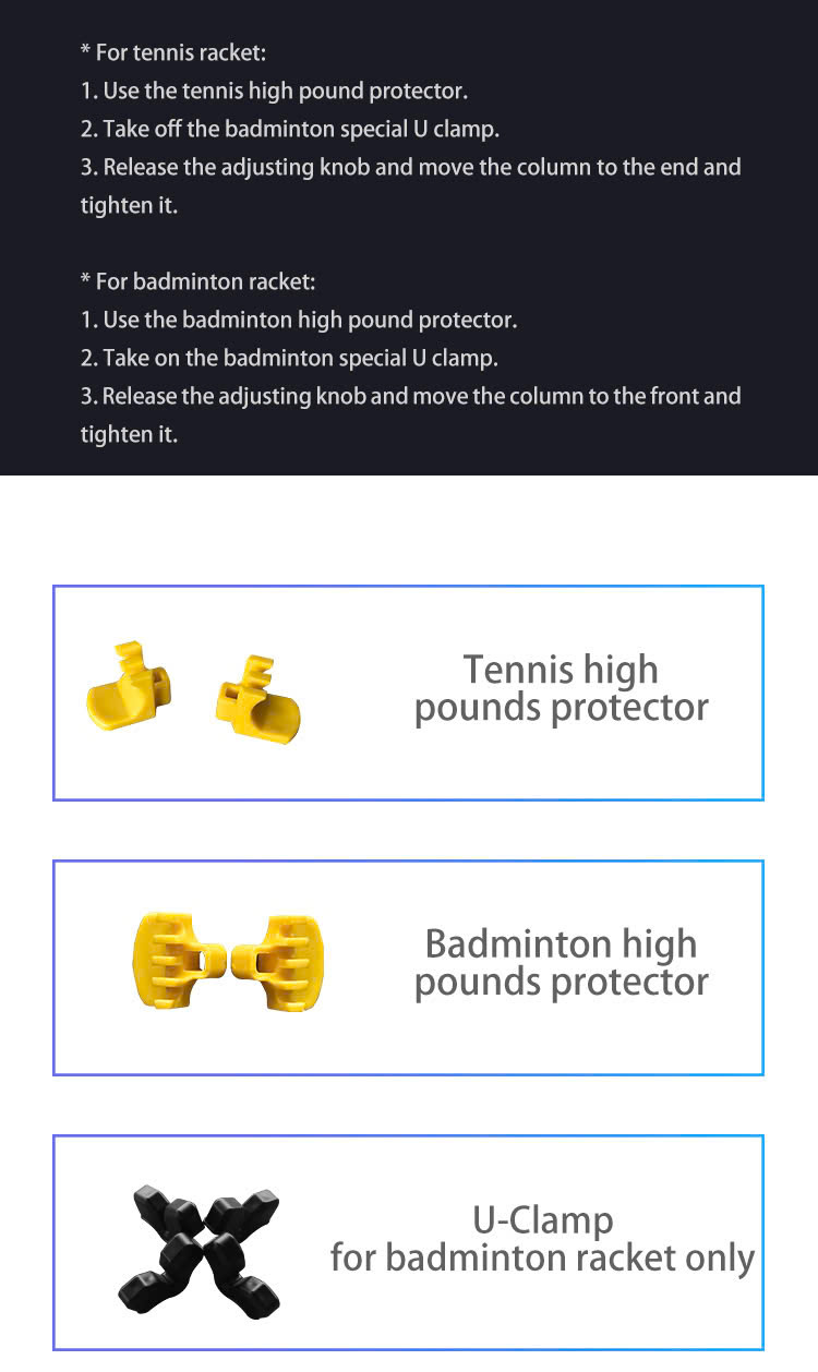 Máy căng vợt cầu lông S3619 là công cụ quan trọng đối với người chơi tennis và cầu lông. Chúng được sử dụng để căng vợt và đảm bảo vợt có độ căng phù hợp và có bố cục dây lý tưởng. ✔ Dành cho vợt cầu lông và tennis. ✔ Tốc độ, âm thanh, kg/lb có thể điều chỉnh. ✔ Tự kiểm tra, thắt nút, lưu trữ, kéo căng trước, chức năng kéo liên tục. ✔ Hệ thống giữ vợt đồng bộ và giữ kẹp tự động.