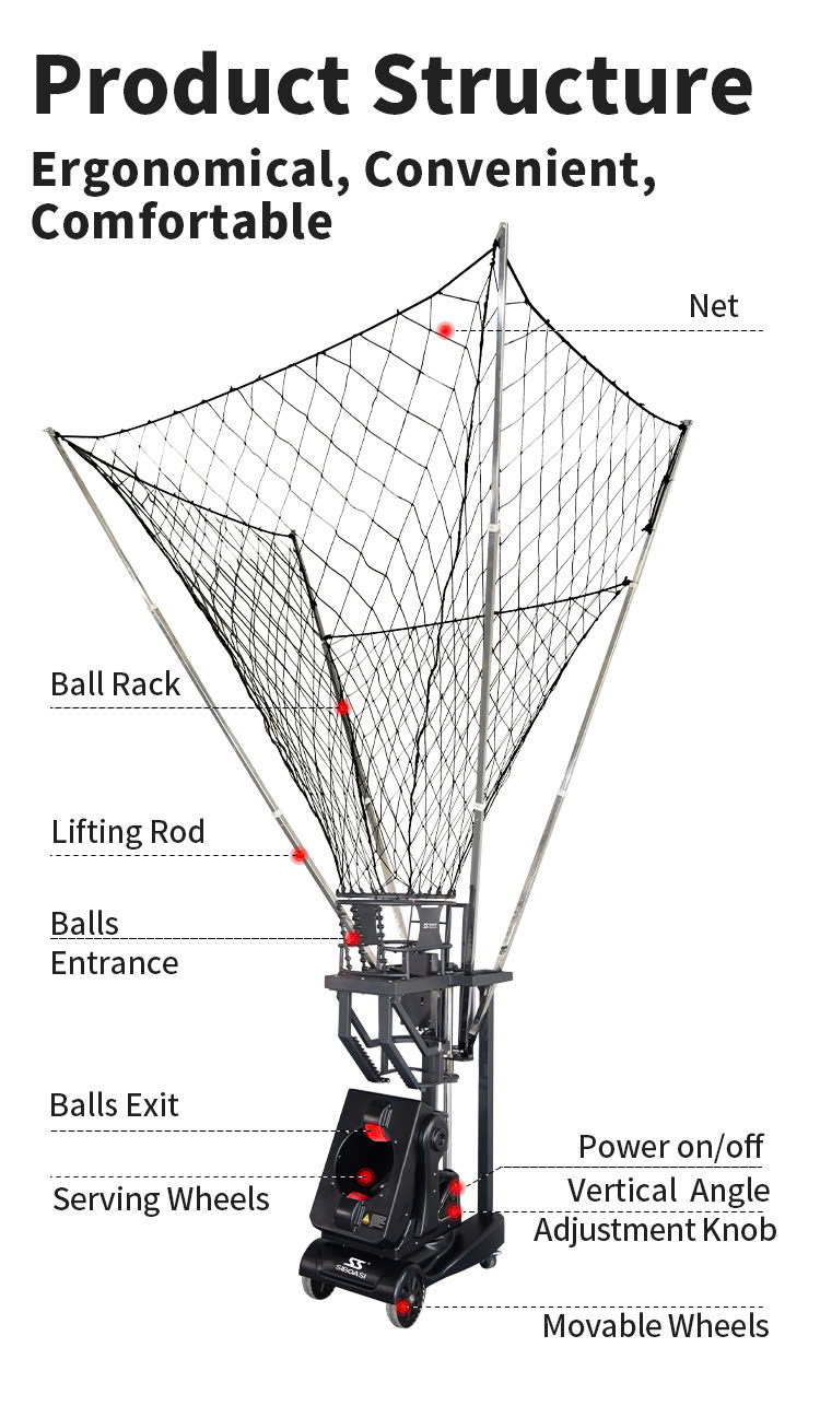 - Không cần phải nhặt bóng, một người chơi hoặc nhiều người chơi có thể luyện tập nhiều lần cùng một lúc để tăng cường thể lực, sức bền và trí nhớ cơ bắp;