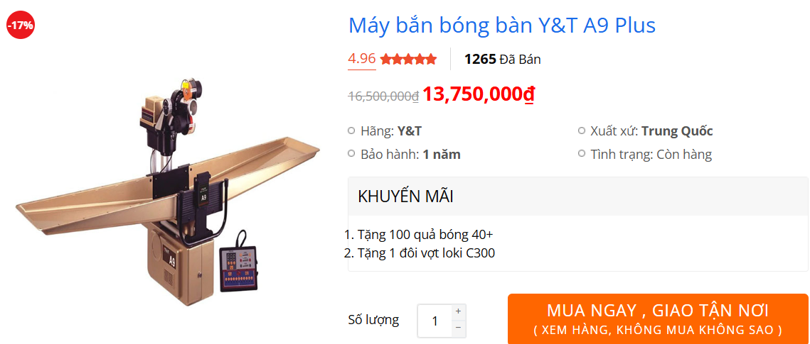 Để lựa chọn được địa chỉ cung cấp máy bắn bóng bàn Y&T A9 không khó, tuy nhiên để tìm được đơn vị uy tín, cam kết bán hàng chính hãng, đảm bảo chất lượng là điều không dễ dàng. Nếu mua phải sản phẩm kém chất lượng sẽ ảnh hưởng đến quá trình luyện tập, dễ hư hỏng, thậm chí khiến khách hàng rơi vào tình cảnh “tiền mất tật mang”. Chính vì vậy, hãy là những người tiêu dùng thông thái, lựa chọn các cơ sở uy tín, có thương hiệu, tên tuổi trên thị trường.